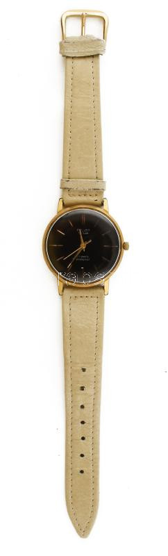 Beschreibung: Poljot fekete számlapos karóra. Kézi felhúzós szerkezettel. Jelzett, működik, bőr szíjjal, d: 35 mm
