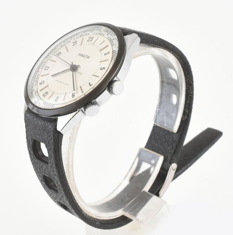 Raketa World Timer mechanikus karóra, szép állapot, működik, d: 40mm https://www.darabanth.com/de/444-Fernauktion/444.0/Kunst-Dokumente-andere-Sammelgebiete/Uhren~500013/Raketa-World-Timer-mechanikus-karora-szep-allapot-mukodik-d-40mm~II2866220