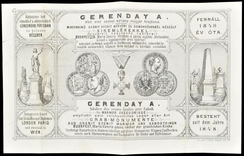 1881 Gerenday síremlék dekoratív fejléces számla síremlék rajzával https://www.darabanth.com/de/444-Fernauktion/444.0/Kunst-Dokumente-andere-Sammelgebiete/Werbungen~500028/1881-Gerenday-siremlek-dekorativ-fejleces-szamla-siremlek-rajzaval~II2933981