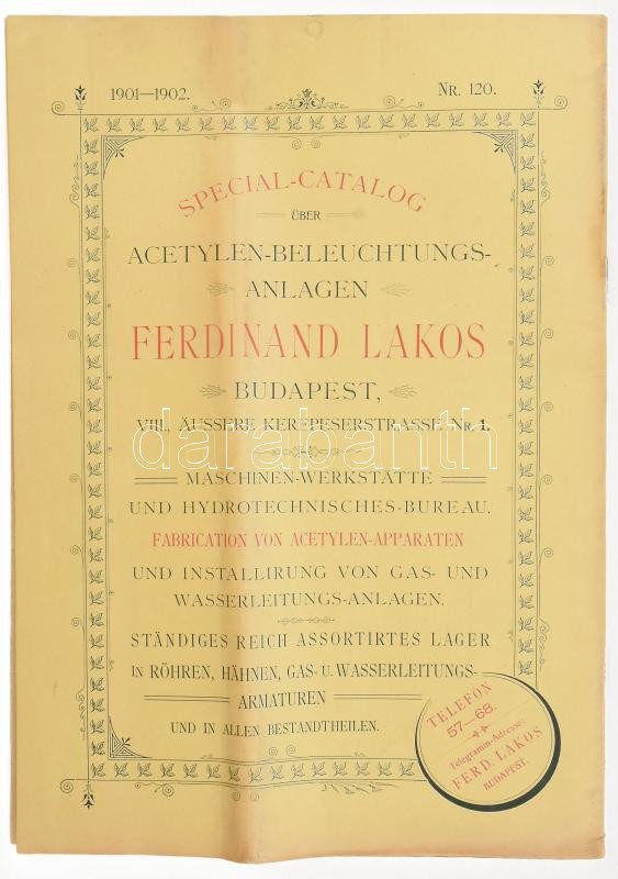 1901 Lakos Nándor Acetylen világítási berendezések képes termékbemutat... https://www.darabanth.com/de/444-Fernauktion/444.0/Kunst-Dokumente-andere-Sammelgebiete/Werbungen~500028/1901-Lakos-Nandor-Acetylen-vilagitasi-berendezesek-kepes-termekbemutato-katalogus-32-p~II2933948