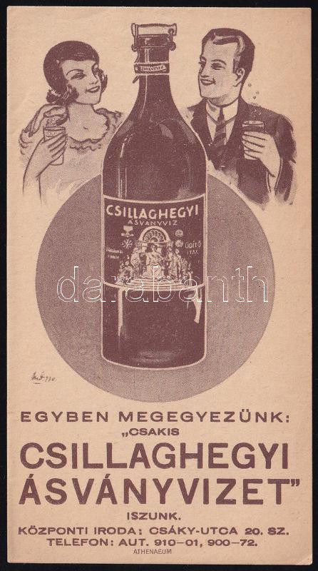 Cca 1904 Csillaghegyi Ásványvizet népszerűsítő számolócédula. https://www.darabanth.com/de/444-Fernauktion/444.0/Kunst-Dokumente-andere-Sammelgebiete/Werbungen~500028/Cca-1904-Csillaghegyi-Asvanyvizet-nepszerusito-szamolocedula~II2932479