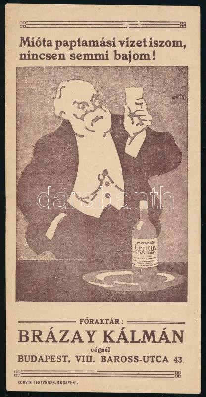 Cca 1910, Paptamási ásványvizet népszerűsítő számolócédula. https://www.darabanth.com/de/444-Fernauktion/444.0/Kunst-Dokumente-andere-Sammelgebiete/Werbungen~500028/Cca-1910-Paptamasi-asvanyvizet-nepszerusito-szamolocedula~II2932487