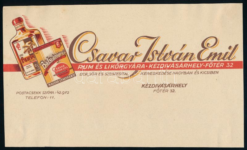 Csavar István Emil Rum és Likőrgyára Kézdivásárhely reklámlap https://www.darabanth.com/de/444-Fernauktion/444.0/Kunst-Dokumente-andere-Sammelgebiete/Werbungen~500028/Csavar-Istvan-Emil-Rum-es-Likorgyara-Kezdivasarhely-reklamlap~II2930288