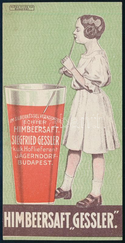 Beschreibung: Himbeersaft "Gessler" számolócédula. Klösz Gy. és Fia Budapest.