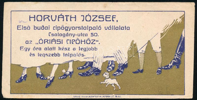 Horváth József első budai cipőgyorstalpaló vállalata, Bp. Csalogány ut... https://www.darabanth.com/de/444-Fernauktion/444.0/Kunst-Dokumente-andere-Sammelgebiete/Werbungen~500028/Horvath-Jozsef-elso-budai-cipogyorstalpalo-vallalata-Bp-Csalogany-utca-szamolocedula~II2930820