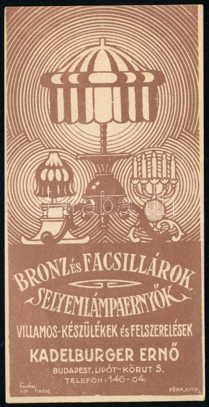 Kadelberger Ernő bronz és fa csillárok számolócédula https://www.darabanth.com/de/444-Fernauktion/444.0/Kunst-Dokumente-andere-Sammelgebiete/Werbungen~500028/Kadelberger-Erno-bronz-es-fa-csillarok-szamolocedula~II2933538