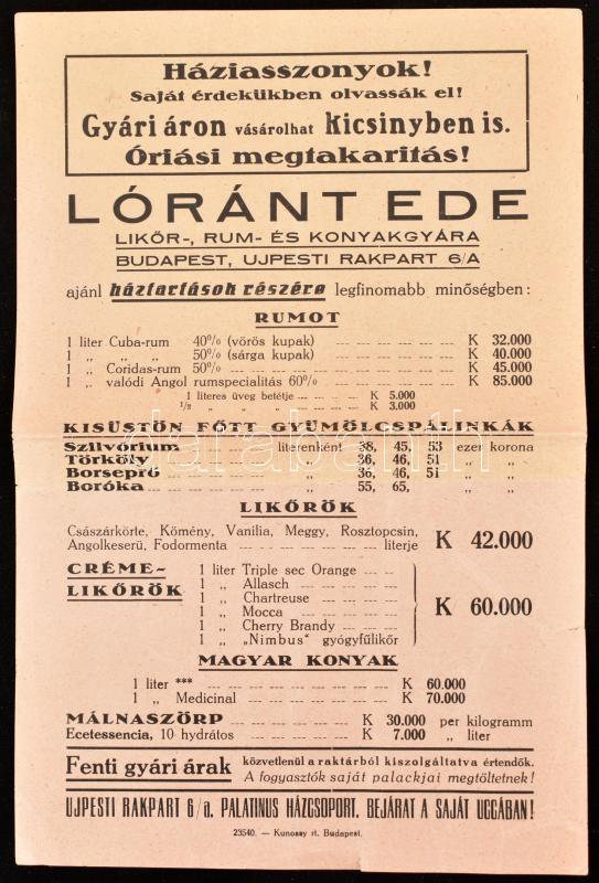 Lóránt Ede Likőr- Rum- és Konyakgyárának különféle termékeinek árjegyz... https://www.darabanth.com/de/444-Fernauktion/444.0/Kunst-Dokumente-andere-Sammelgebiete/Werbungen~500028/Lorant-Ede-Likor-Rum-es-Konyakgyaranak-kulonfele-termekeinek-arjegyzeke-hatoldalan-~II2930462