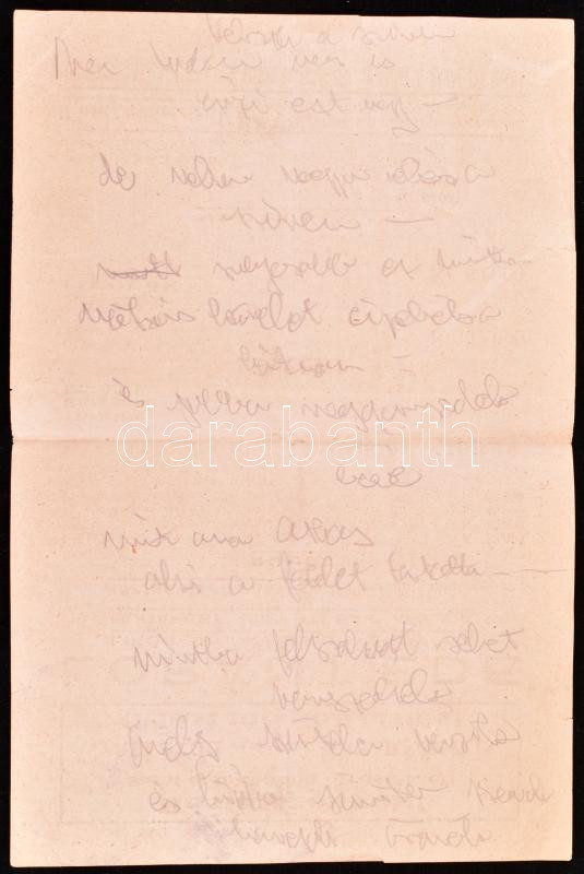 Beschreibung: Lóránt Ede Likőr- Rum- és Konyakgyárának különféle termékeinek árjegyzéke, hátoldalán üzenettel.