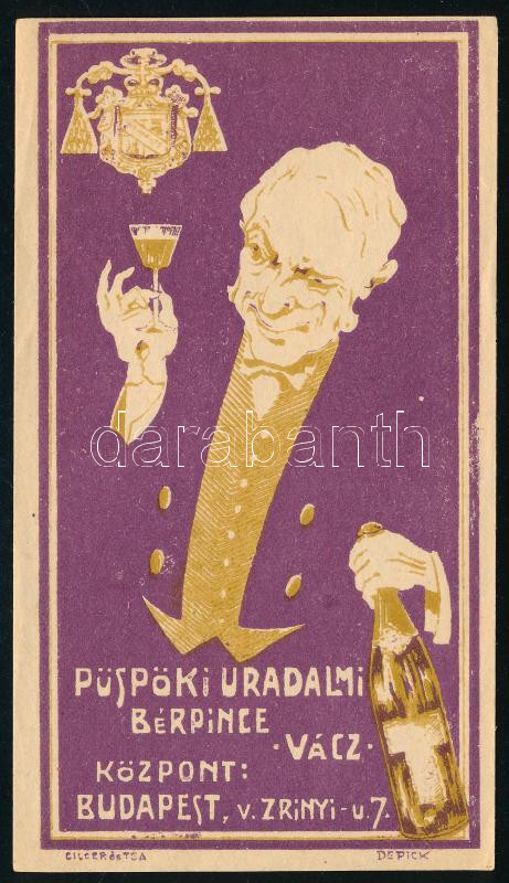 Püspöki uradalmi borpince, Vác számolócédula https://www.darabanth.com/de/444-Fernauktion/444.0/Kunst-Dokumente-andere-Sammelgebiete/Werbungen~500028/Puspoki-uradalmi-borpince-Vac-szamolocedula~II2933534