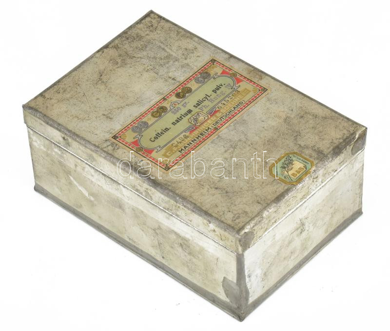 Régi német patikai fémdoboz, C. F. Boehringer & Soehne, Coffein. n... https://www.darabanth.com/de/444-Fernauktion/444.0/Kunst-Dokumente-andere-Sammelgebiete/Werbungen~500028/Regi-nemet-patikai-femdoboz-C-F-Boehringer-Soehne-Coffein-natrium-salicyl-pulv-Ph-Hung~II2899173