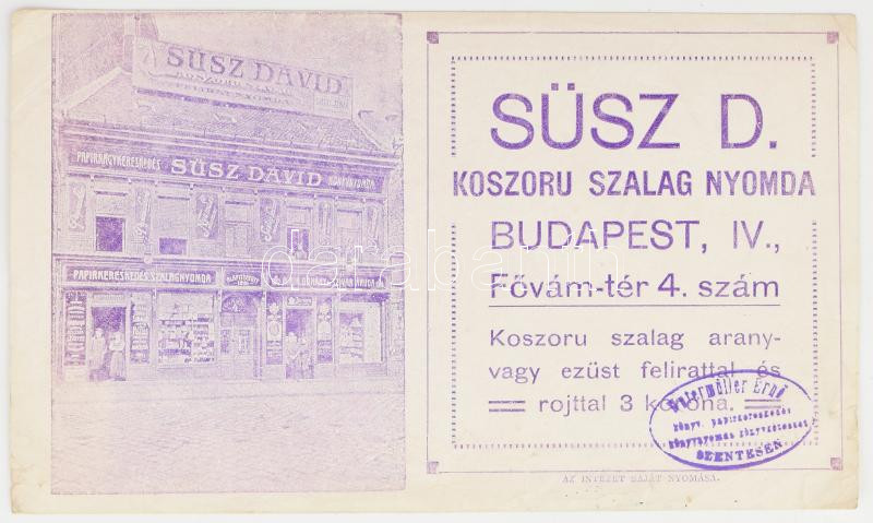 cca 1900 Szüsz D. Koszoru szalag nyomda Fővám tér reklámos számolócédu... https://www.darabanth.com/de/444-Fernauktion/444.0/Kunst-Dokumente-andere-Sammelgebiete/Werbungen~500028/cca-1900-Szusz-D-Koszoru-szalag-nyomda-Fovam-ter-reklamos-szamolocedula-15x9-cm~II2935494