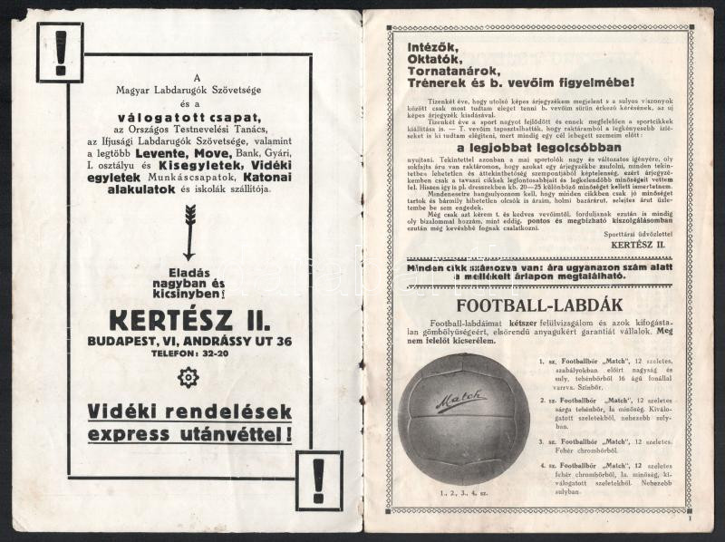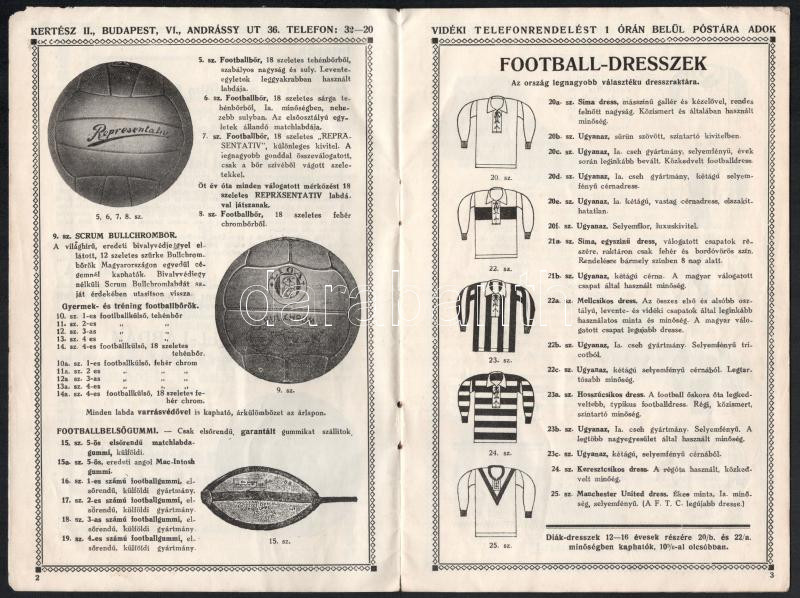 cca 1926 Kertész II. (Bp. VI., Andrássy út 36.) futball- és sportfelszerelések üzletének képes katalógusa / árjegyzéke. Bp., Arany János-ny., 16 p. Tűzött papírkötés, kissé viseltes borítóval.