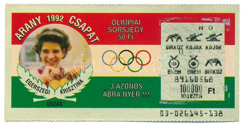 1992. "Olimpiai sorsjegy - Egerszegi Krisztina" 50Ft értékbe... https://www.darabanth.com/de/444-Fernauktion/444.0/Numismatik/Aktien-und-Tickets~1000005/1992-Olimpiai-sorsjegy-Egerszegi-Krisztina-50Ft-ertekben-TAU~II2933453