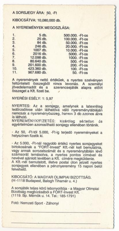 Beschreibung: 1992. "Olimpiai sorsjegy - Egerszegi Krisztina" 50Ft értékben T:AU