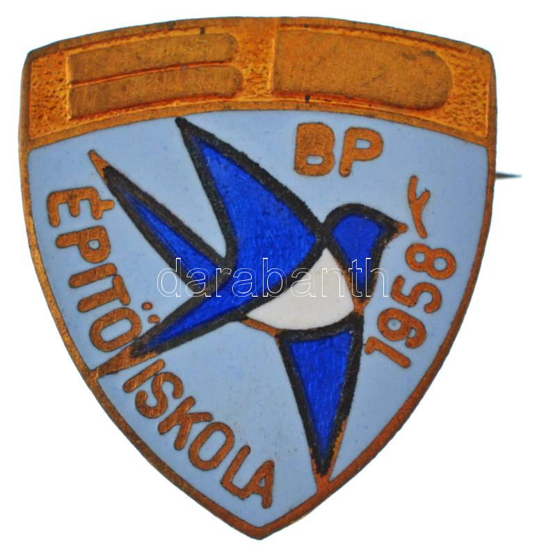 1958. "Építőiskola - BP - 1958" zománcozott fém jelvény (22x24mm) T:AU