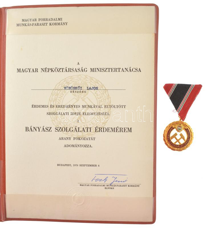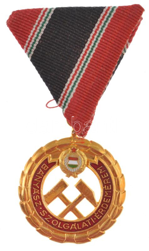 1970. "Bányász Szolgálati Érdemérem arany fokozata" műgyantás fém kitüntetés mellszalagon, adományozói lappal T:XF