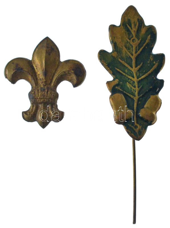 DN Cu cserkész kitűző tű nélkül + festett tölgyleveles Cu jelvény (18x37mm) T:XF