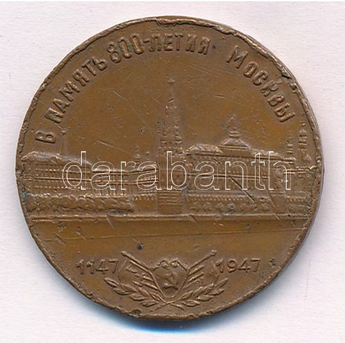 Szovjetunió 1947. "Moszkva alapításának 800. évfordulója, 1147-1947" kétoldalas Cu kitüntetés mellszalag nélkül (37mm) T:2- a fül letört, ph, karc, ü Soviet Union 1947. "In memory of the 800th Anniversary of Moscow, 1147-1947" two-sided Cu medal without ribbon (37mm) C:VF missing ear, edge error, scratch, ding