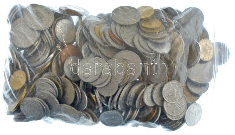 Beschreibung: Vegyes, magyar és külföldi érmetétel mintegy ~1kg súlyban T:vegyes Mixed, Hungarian and foreign coin lot (~1kg) C:mixed