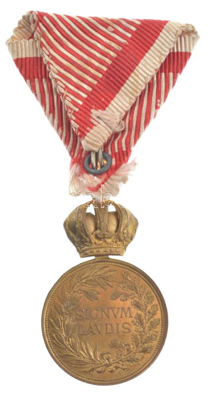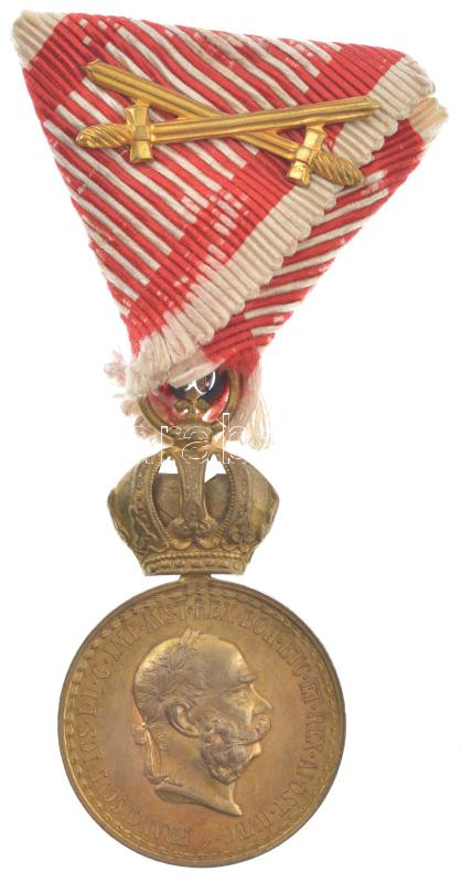 Austro-Hungarian Monarchy 1890. "Bronze Military Merit Medal on a war ribbon with swords (Signum Laudis)" gold plated bronze decoration with ribbon C:AU,XF worn ribbon