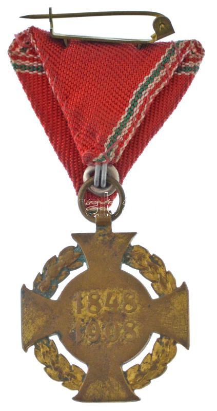 1908. "Katonai Jubileumi Kereszt" aranyozott bronz kitüntetés nem eredeti mellszalagon T:VF Hungary 1908. "Diamond Jubilee Cross for the Armed Forces" gilt bronze decoration with not original ribbon C:VF NMK 269.