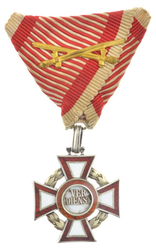 Hungary 1916. "Military Merit Cross, 3rd Class with war decoration" enamelled Ag decoration on ribbon, hallmarked on the ring C:AU