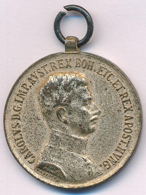 1917. "Károly Ezüst Vitézségi Érem II. osztálya" ezüstözött ... https://www.darabanth.com/de/444-Fernauktion/444.0/Numismatik/Militaria~1000017/1917-Karoly-Ezust-Vitezsegi-Erem-II-osztalya-ezustozott-bronz-kituntetes-modern-mells~II2925750
