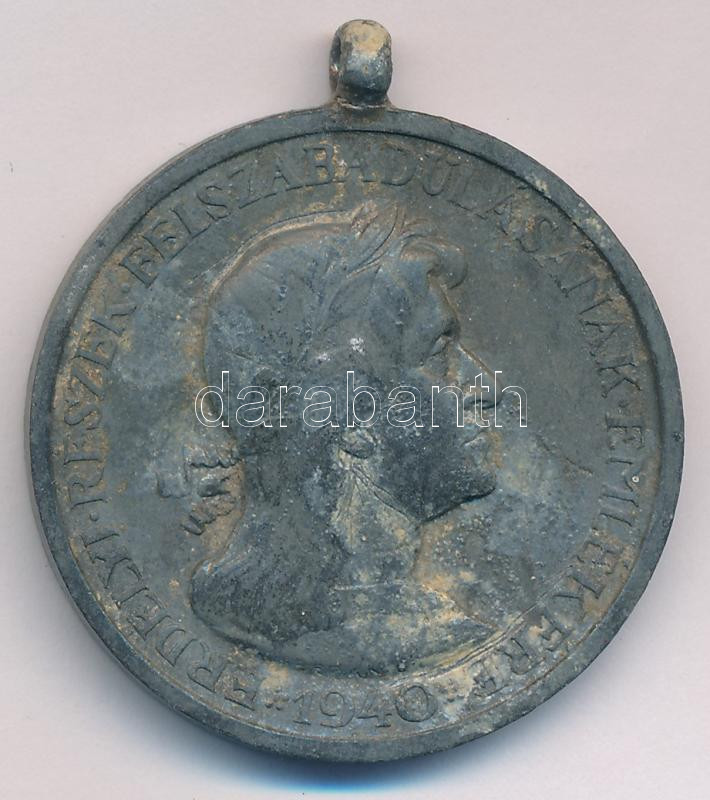 1940. "Erdélyi részek felszabadulásának emlékére" Zn emlékérem mellszalag nélkül. Szign.: Berán T:XF oxidáció Hungary 1940. "Commemorative Medal for the Liberation of Transylvania" Zn medal without ribbon. Sign.: Berán C:XF oxidation NMK 428.