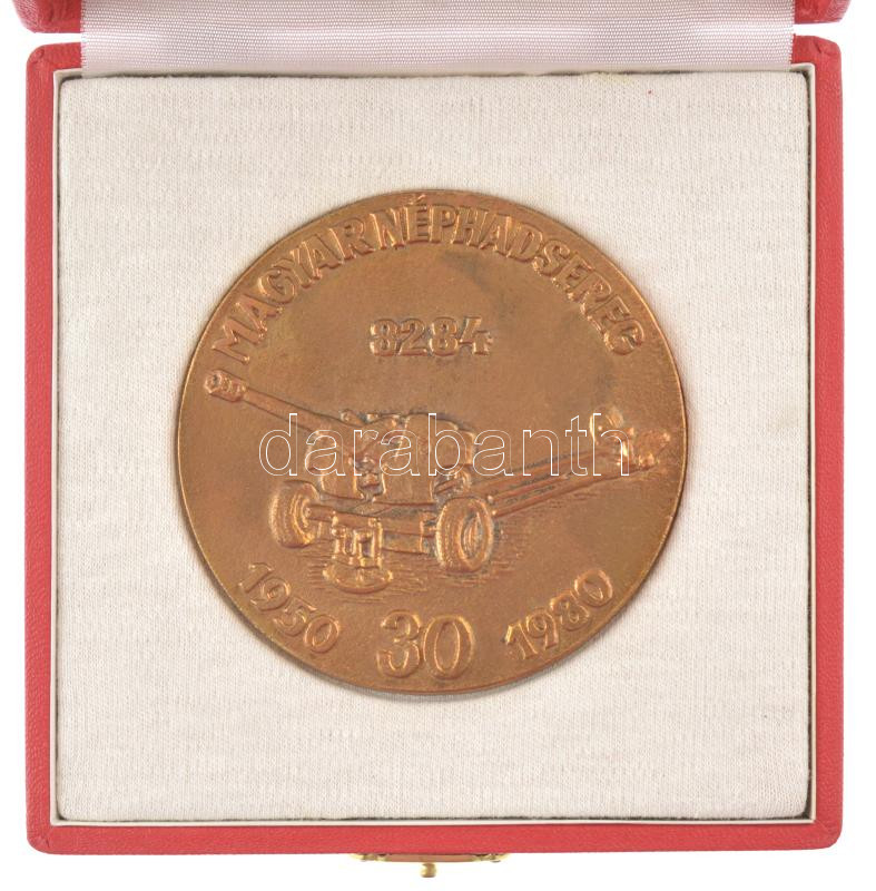 Beschreibung: 1980. "Magyar Néphadsereg 8284 - 1950-1980 - 30" a Marcali helyőrség 20. tüzérezredének egyoldalas, öntött bronz plakett, eredeti tokban (~79-80mm) T:UNC