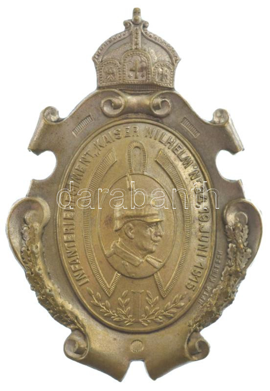 Német Birodalom 1915. "Infanterieregiment Kaiser Wilhelm Nr 34. 19. Juni 1915" gyalogezred jelvény Szign.: Hptm.Kirtsch (40x57mm) T:AU