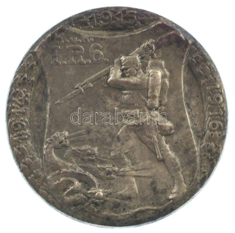 Osztrák-Magyar Monarchia 1916. "K.u.K. I.R. 6." a szabadkai Császári és Királyi 6. Gyalogezred sapkajelvénye (~31-32mm) T:AU