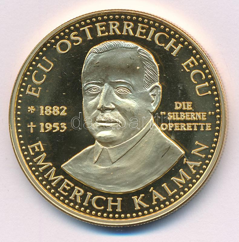 Ausztria ~1995. "ECU Österreich ECU - Emmerich Kálmán / Austria - Servus Europa" aranyozott Cu-Ni emlékérem T:PP fo.