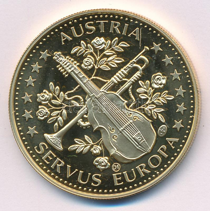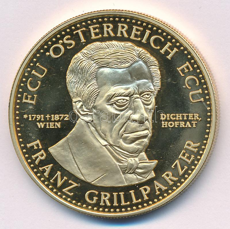 Ausztria ~1995. "ECU Österreich ECU - Franz Grillparzer / Austria - Servus Europa" aranyozott Cu-Ni emlékérem T:PP halvány fo. Ausztria ~1995. "ECU Österreich ECU - Franz Grillparzer / Austria - Servus Europa" gilt Cu-Ni commemorative medallion C:PP faint spot