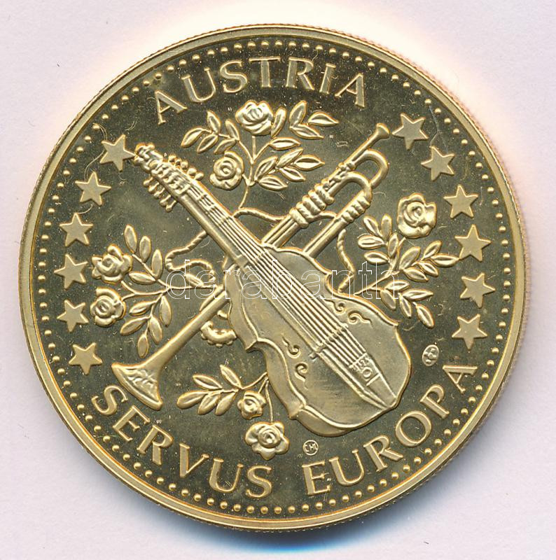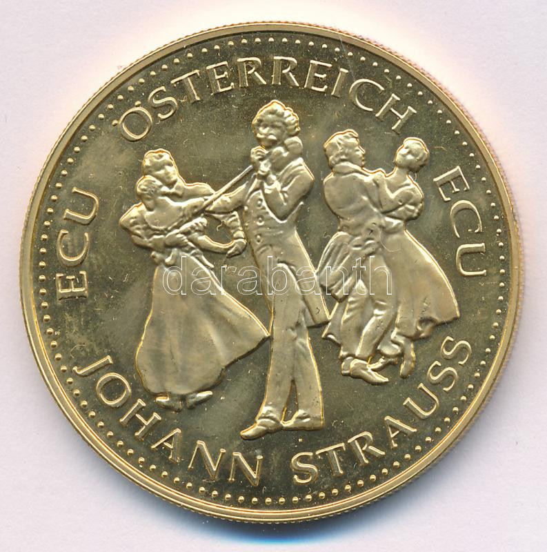 Ausztria ~1995. "ECU Österreich ECU - Johann Strauss / Austria - Servus Europa" aranyozott Cu-Ni emlékérem T:PP fo.