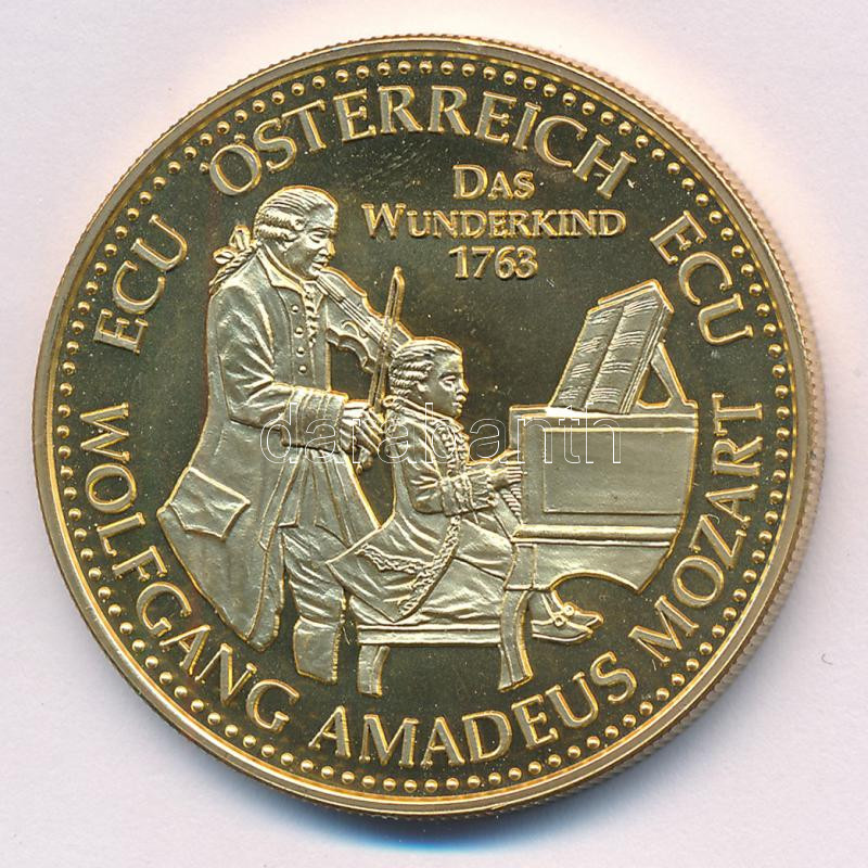 Ausztria ~1995. "ECU Österreich ECU - Wolfgang Amadeus Mozart / Austria - Servus Europa" aranyozott Cu-Ni emlékérem T:PP