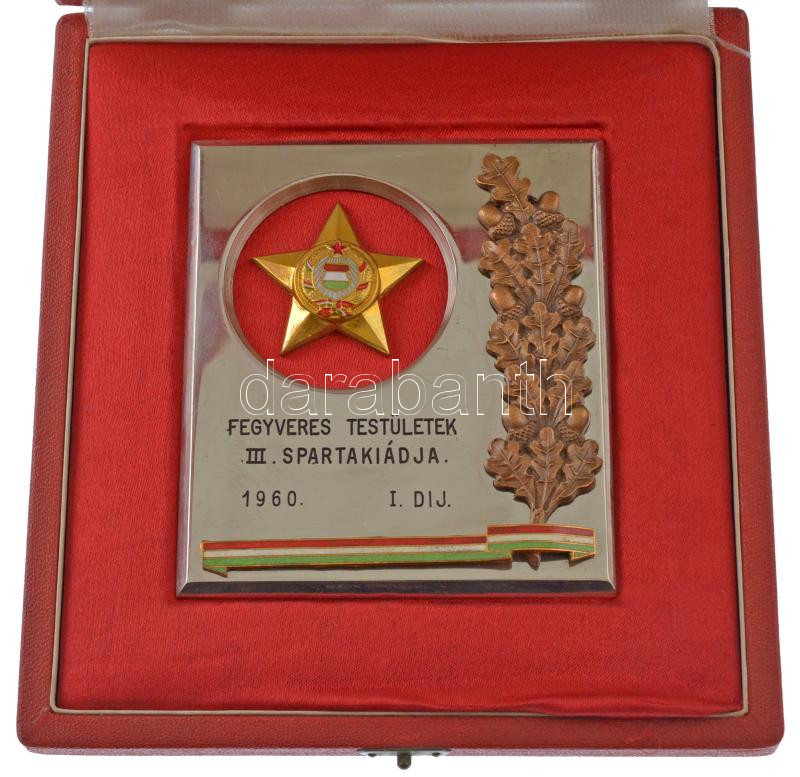 1960. "Fegyveres Testületek Spartakiádja" tokba rögzített, r... https://www.darabanth.com/de/444-Fernauktion/444.0/Numismatik/Sportpreise-und-Sportgedenkmedaillen~1000011/1960-Fegyveres-Testuletek-Spartakiadja-tokba-rogzitett-reszben-zomancozott-fem-sport-emlC3~II2867248