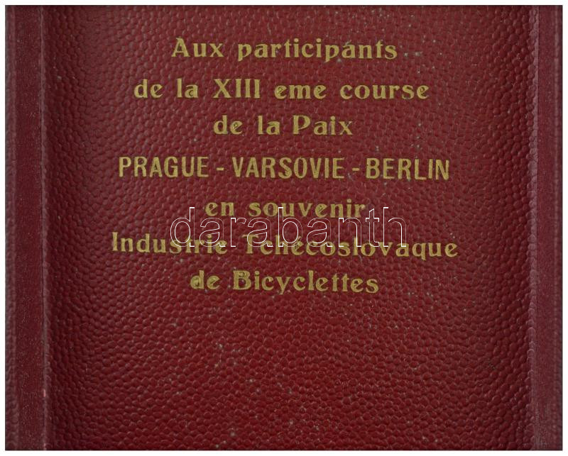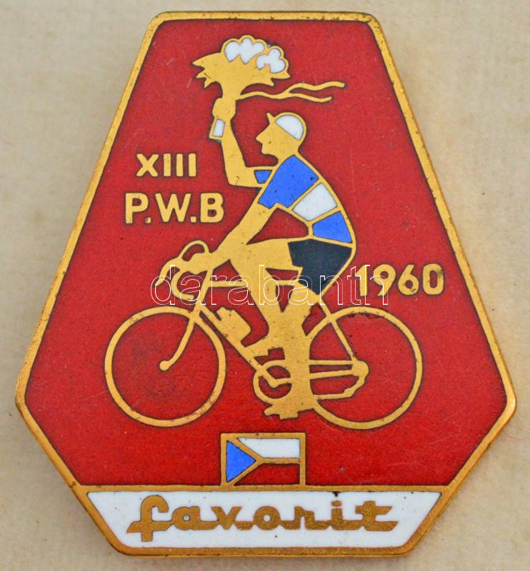 Czechoslovakia 1960. "XIII. Prague-Warsaw-Berlin" gilt, enamelled bronze badge in original case, with an inscription in French on the inside of the case "To the participants of the XIII Peace Race Prague-Warsaw-Berlin in memory - Czechoslovak Bicycle Industry" (36x40mm) T:AU