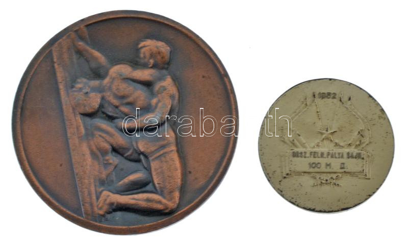 Beschreibung: DN "Birkózók" egyoldalas Zn érem (60mm) + 1952. "Rövidtávfutó" ezüstözött díjérem sérült tokban (36mm) T:2