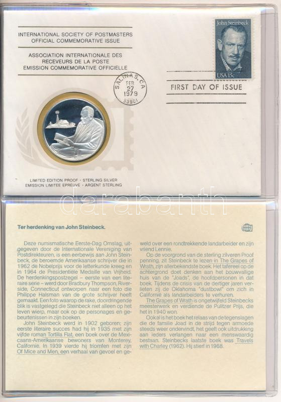 1979. "Postamesterek Nemzetközi Szövetsége hivatalos emlékérem kiadása 1979 - Amerikai Egyesült Államok" Ag emlékérem érmés borítékban, első napi bélyegzős bélyeggel, holland nyelvű leírással (20g/0.925/39mm) T:PP 1979. "Internatinal Society of Postmasters Official Commemorative Issue 1979 - USA" Ag commemorative medallion in coin envelope, with stamp and first day cancellation, with Dutch information (20g/0.925/39mm) C:PP
