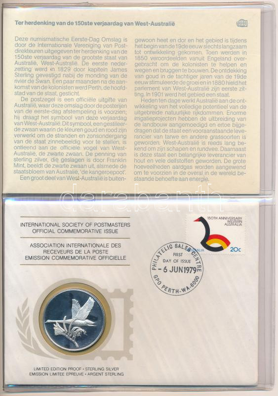 1979. "Postamesterek Nemzetközi Szövetsége hivatalos emlékérem kiadása 1979 - Amerikai Egyesült Államok" Ag emlékérem érmés borítékban, első napi bélyegzős bélyeggel, holland nyelvű leírással (20g/0.925/39mm) T:PP 1979. "Internatinal Society of Postmasters Official Commemorative Issue 1979 - USA" Ag commemorative medallion in coin envelope, with stamp and first day cancellation, with Dutch information (20g/0.925/39mm) C:PP