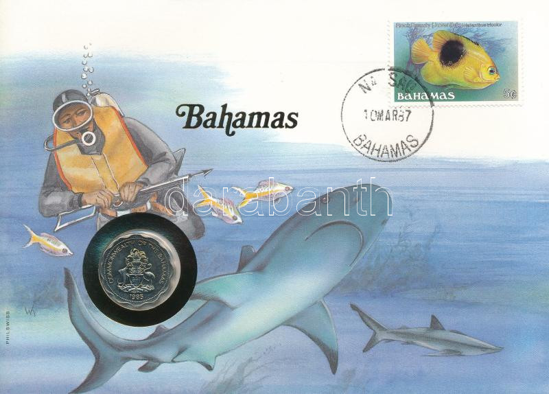 Bahamák 1985. 10c felbélyegzett borítékban, bélyegzéssel, német nyelvű leírással T:UNC Bahamas 1985. 10 Cents in envelope with stamp and cancellation, with German description C:UNC