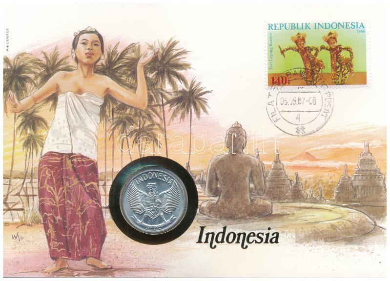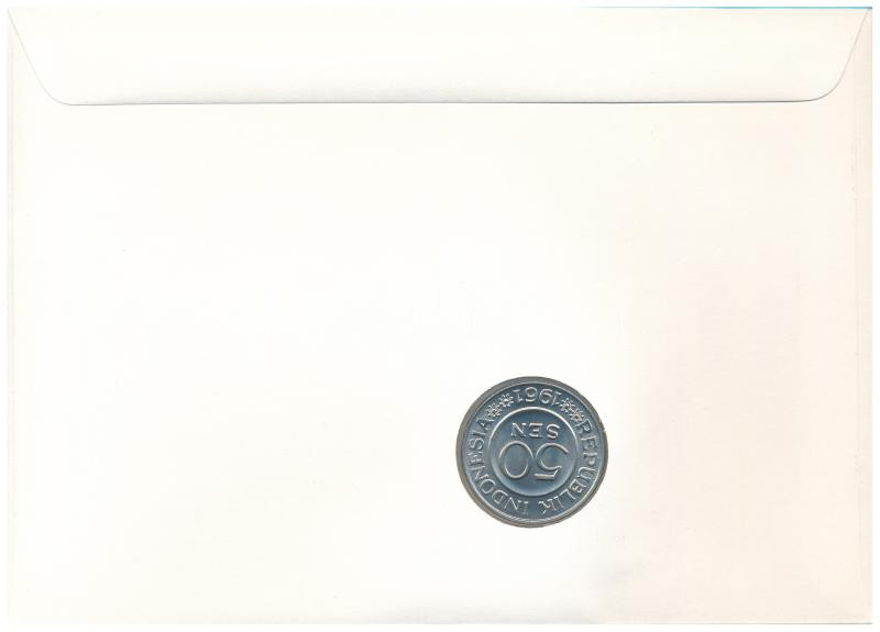 Indonézia 1961. 50s Al, felbélyegzett borítékban, bélyegzéssel, német nyelvű leírással T:1- Indonesia 1961. 50 Sen Al in envelope with stamp, with German description C:AU