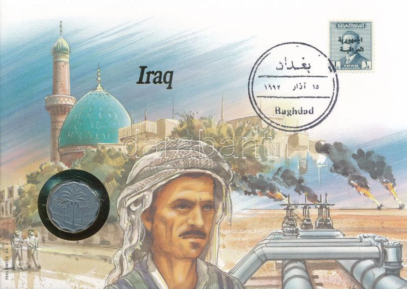 Irak 1971. 10f felbélyegzett borítékban, bélyegzéssel, német nyelvű leírással T:AU Iraq 1971. 10 Fils in envelope with stamp and cancellation, with German language description C:AU