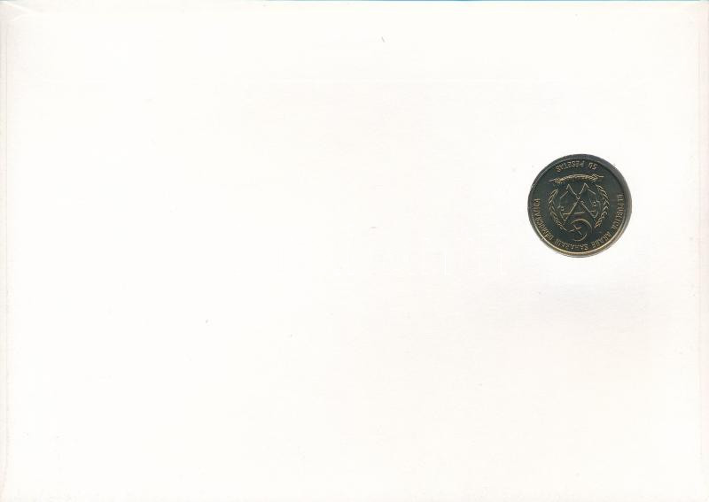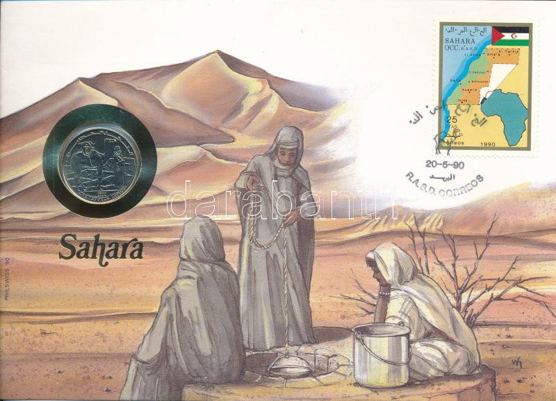 Szaharai Arab Demokratikus Köztársaság 1990. 50p Cu-Ni felbélyegzett borítékban, bélyegzéssel, német nyelvű leírással T:UNC Sharawi Arab Democratic Republic 1990. 50 Pesetas Cu-Ni in envelope with stamp and cancellation, with German language description C:UNC
