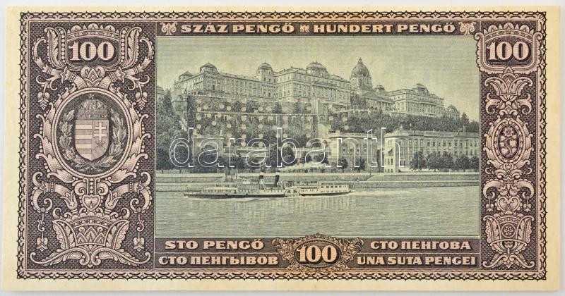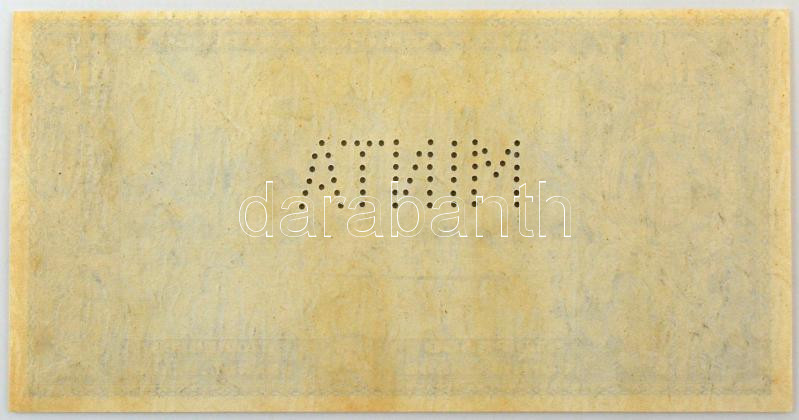 1926. 100P fázisnyomat, előlapi nyomat nélkül, hátlapi normál nyomattal, "MINTA" perforációval, makkos-tölgyleveles vízjellel T:UNC R! Hungary 1926. 100 Pengő phase print, without print on the frontside, with normal print on the backside, and with "MINTA" (SPECIMEN) perforation C:UNC R! Adamo SP16