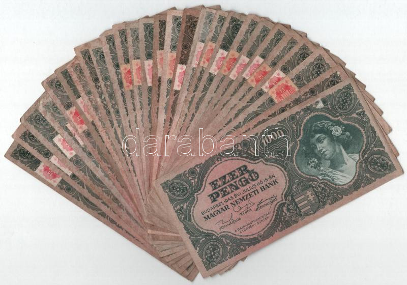Beschreibung: 1945. 1000P többségében "MNB" bélyeggel (27x) T:F,VG