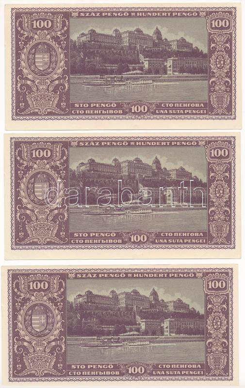 Beschreibung: 1945. 100P (3x) sorszámkövetők "B 238 074912 - B 238 074914" T:AU / Hungary 1945. 100 Pengő (3x) consecutive serials "B 238 074912 - B 238 074914" C:AU