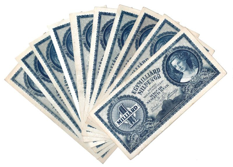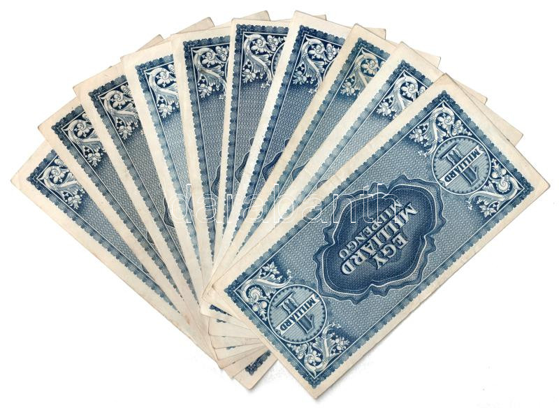 Beschreibung: 1946. 1.000.000.000MP (10x) T:F az egyiken anyaghiány