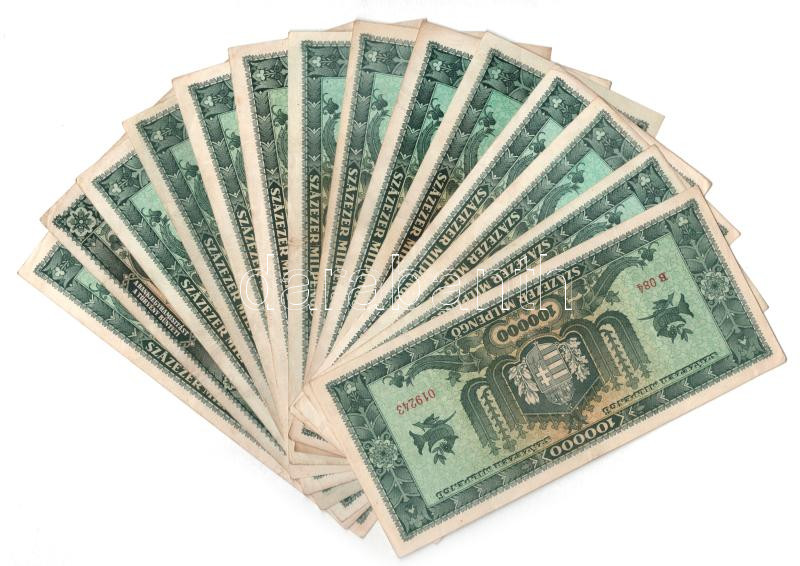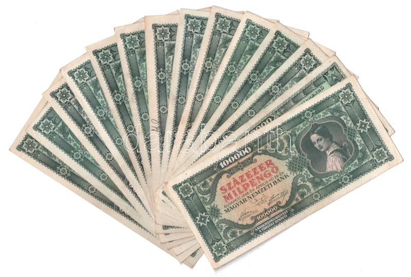 1946. 100.000MP (14x) T:VF,F https://www.darabanth.com/de/444-Fernauktion/444.0/Numismatik/Ungarische-Banknoten~1000007/1946-100000MP-14x-TVF-F~II2930517