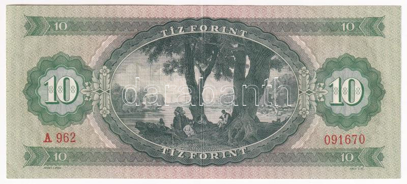 1969. 10Ft "A 962 091670" T:F szép papír https://www.darabanth.com/de/444-Fernauktion/444.0/Numismatik/Ungarische-Banknoten~1000007/1969-10Ft-A-962-091670-TF-szep-papir~II2911606